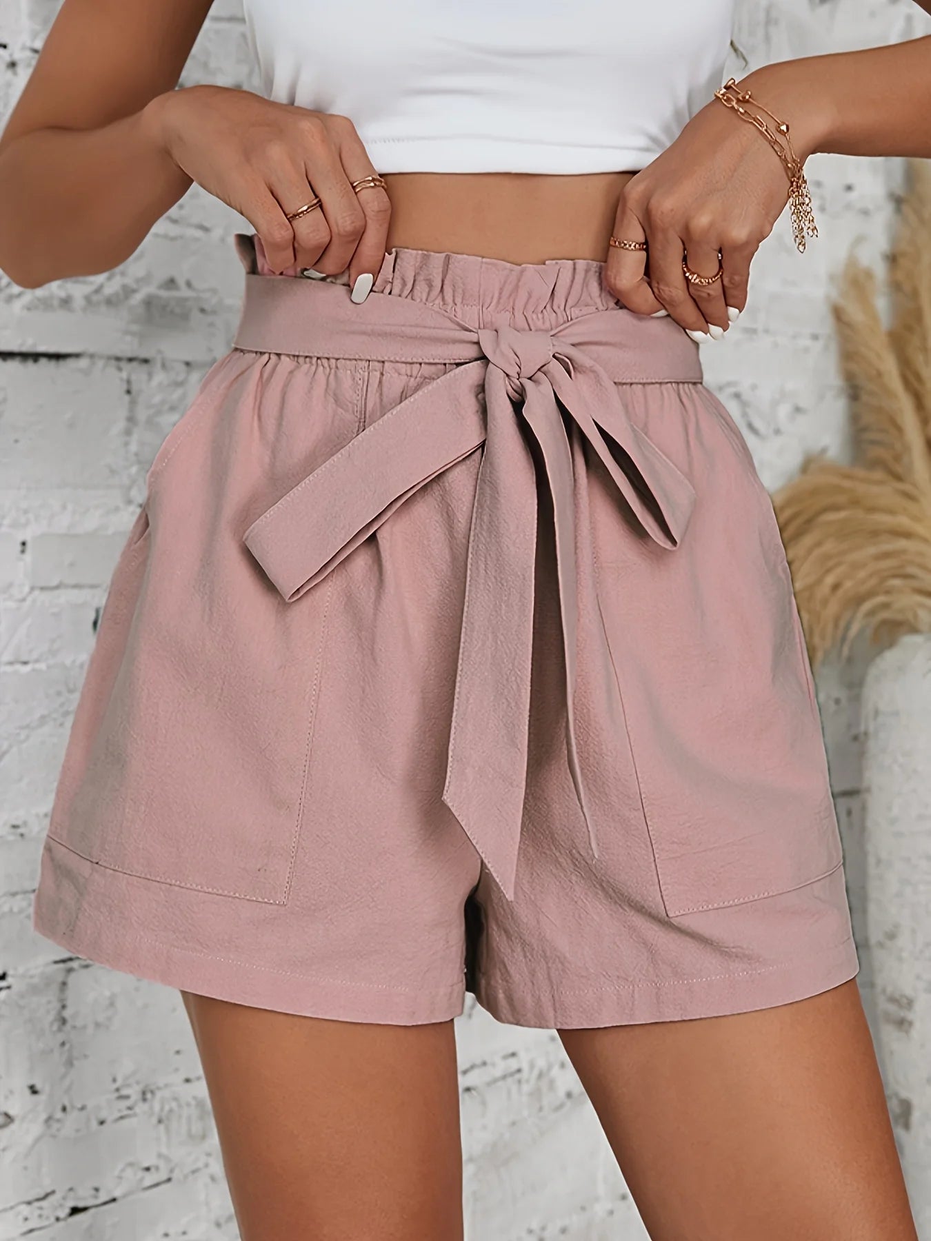 2026 Summer New Style Casual Commuter Style Ruffled High-Waisted Wide-Leg Shorts with Tie-Waist Slimming Effect Loose A-Line Shorts Suitable for Young Women