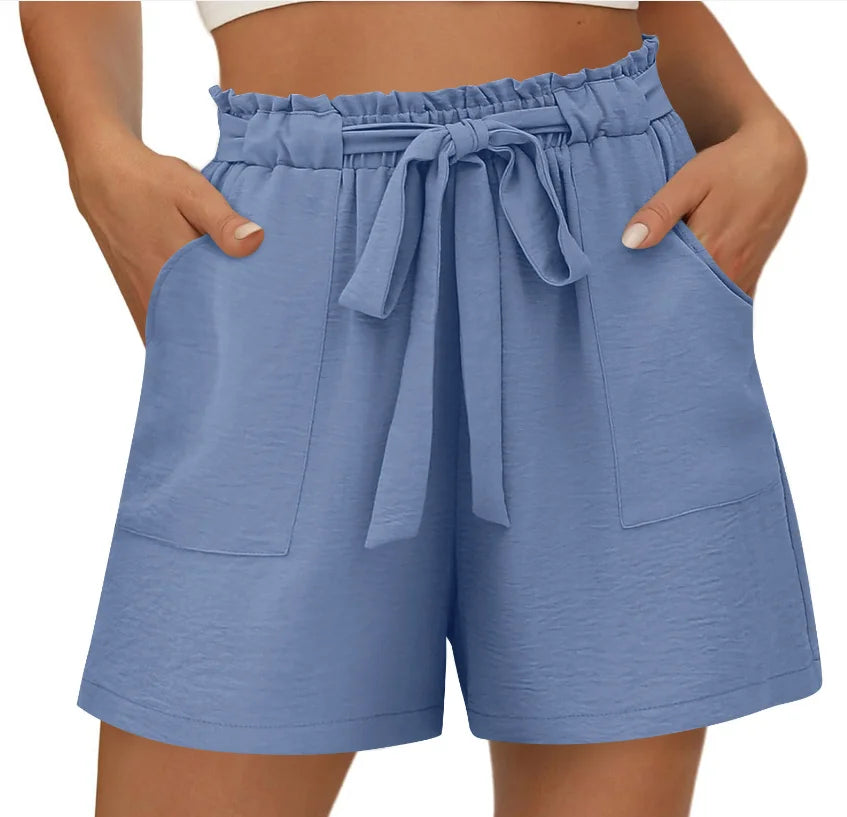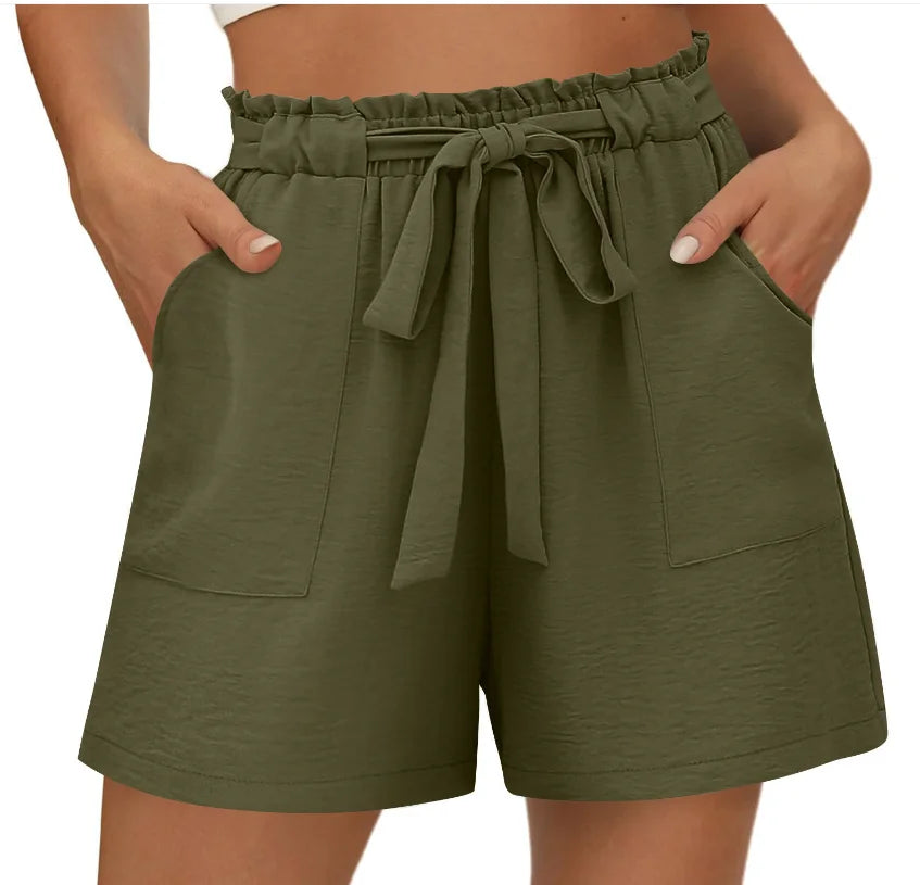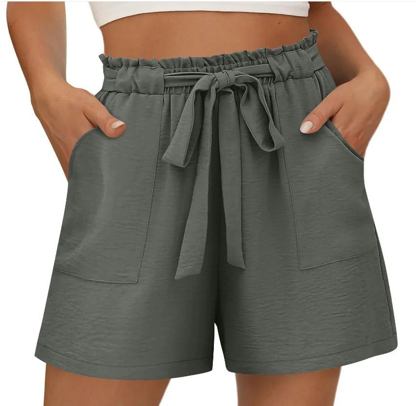 Women Casual Shorts Comfortable Breathable Stylish Elasticated Drawstring Wide Leg Shorts Women Gym Fitness Running Shorts
